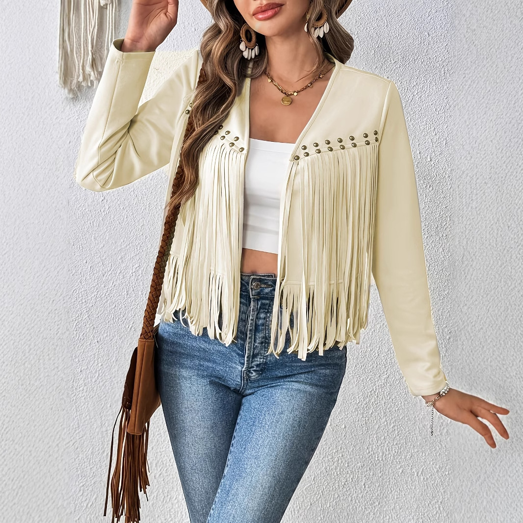 Women’s Elegant Solid Color Tassel Trimmed Front Open Jacket Jacket