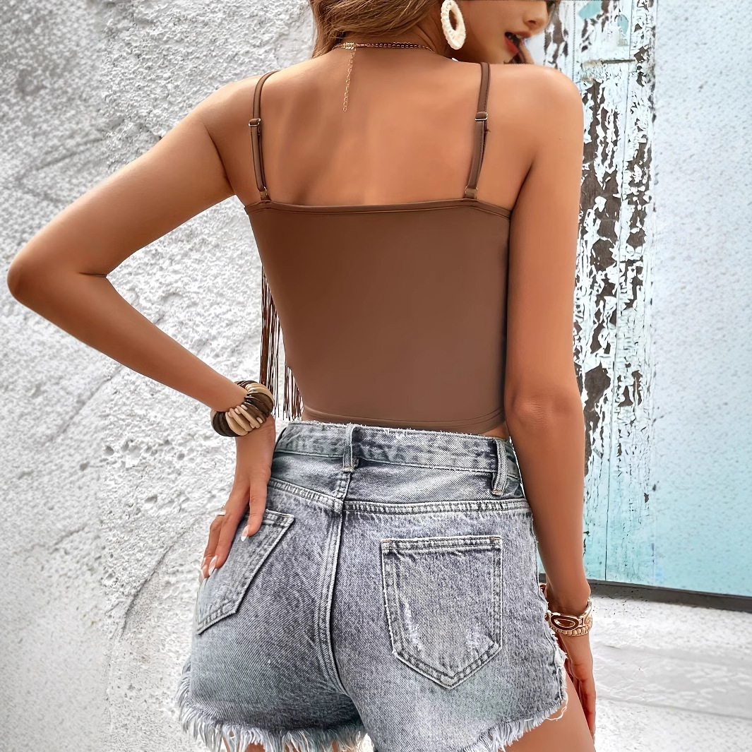 Women’s Summer Tassel Camisole Tight V-neck Solid Color Top